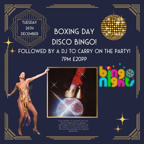 🎉 Get ready for a night of fun, laughter, and disco vibes at our Boxing Day Disco Bingo in The Princess Grace Suite! Join us at 7 PM for an exciting evening filled with interactive bingo games, a lively DJ, and non-stop party vibes. 🕺💃